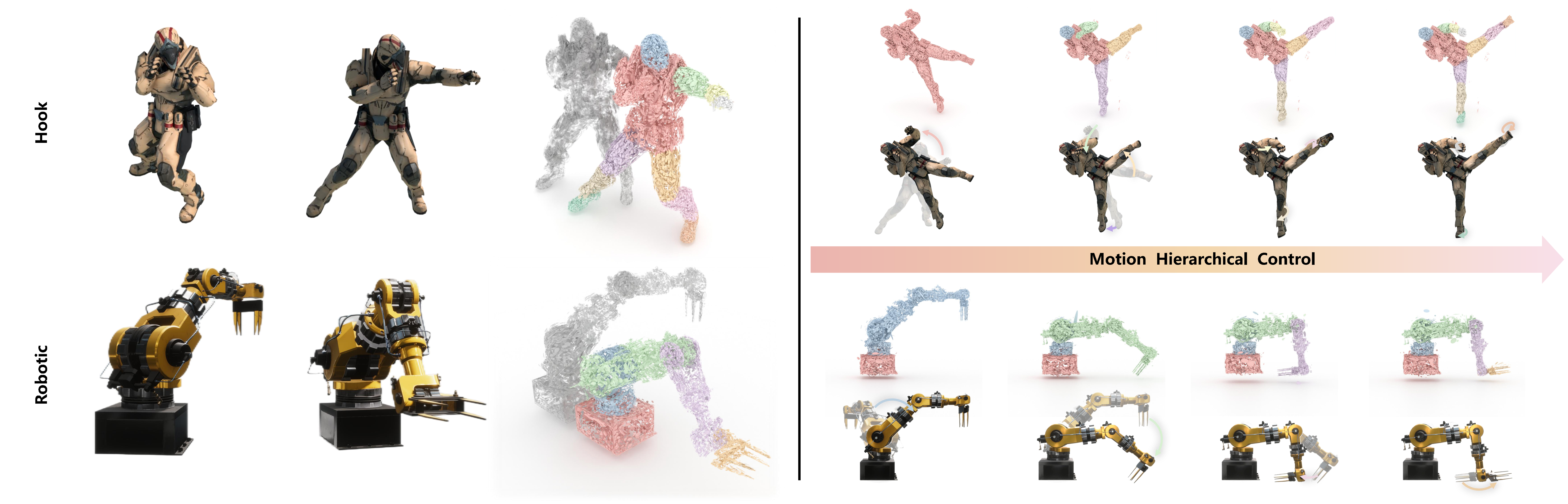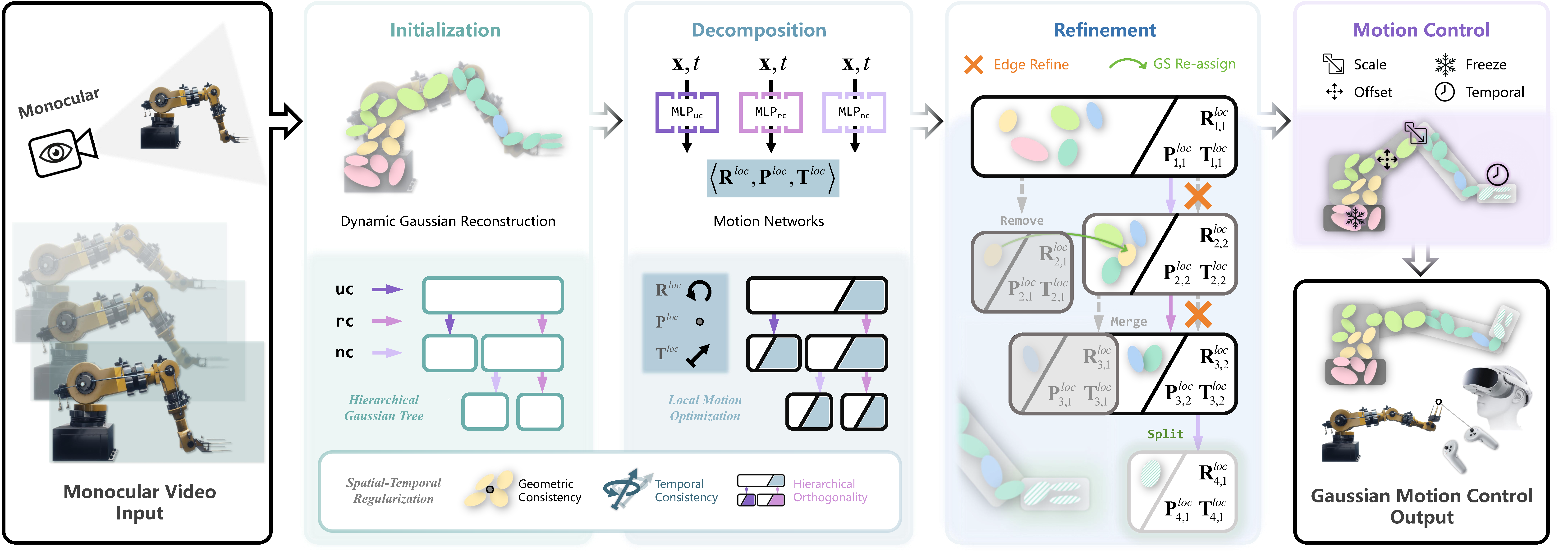 The pipeline of our motion hierarchical Gaussian based dynamic control method.